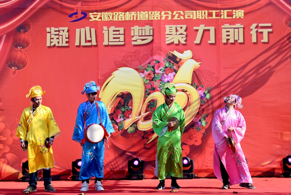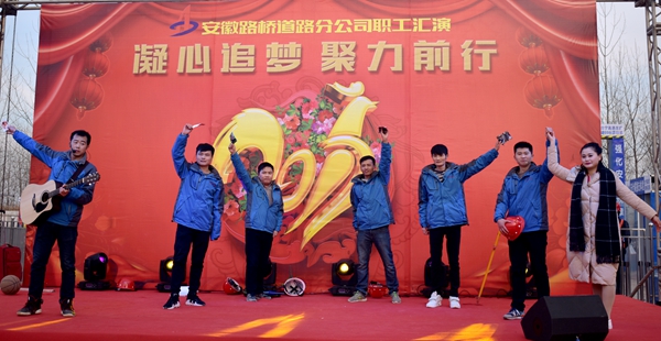 演出現(xiàn)場氣氛喜慶熱烈,座無虛席。伴隨著歡快熱情的舞蹈《追夢》,文藝匯演正式拉開帷幕?;顫娪哪娜浒搿豆さ啬切┦聝骸罚v出了路橋項目上那些點點滴滴;《舞曲串燒》的舞者們用幽默詼諧的舞姿,表達對新春的祝福;歌曲《青蘋果樂園》,展現(xiàn)了路橋青年人的自信、進取的精神風貌;大氣磅礴的配樂詩朗誦《抗洪生命線》回顧了公司參加環(huán)巢湖大堤抗洪搶險整個過程,充分體現(xiàn)了“回報社會實現(xiàn)價值”的企業(yè)使命;舞蹈《千年等一回》、歌曲《江南·云水謠》充分展示了路橋職工們深厚的藝術(shù)底蘊;歌曲《你會到工地看我嗎》,通過情景劇的形式,充分表達了一線路橋員工的心聲;《生活有點咸》以相聲的的形式,展現(xiàn)路橋人真實的生活狀態(tài),也表現(xiàn)了路橋人苦中作樂、自強不息精神。