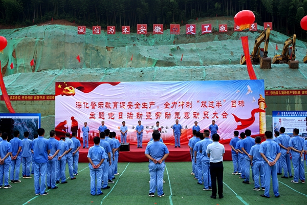 為迅速響應(yīng)集團(tuán)關(guān)于開展“戰(zhàn)疫情、搶工期、保目標(biāo)、促超產(chǎn)”勞動(dòng)競(jìng)賽的號(hào)召,以警示教育成效促進(jìn)生產(chǎn)經(jīng)營(yíng),更好壓實(shí)安全主體責(zé)任,確保二季度結(jié)束時(shí)實(shí)現(xiàn)“雙過(guò)半”目標(biāo)。6月3日上午,道路分公司黨總支在蕪黃路基07標(biāo)項(xiàng)目舉行“深化警示教育促安全生產(chǎn)、全力沖刺雙過(guò)半目標(biāo)”主題黨日活動(dòng)暨勞動(dòng)競(jìng)賽動(dòng)員大會(huì),分公司主要領(lǐng)導(dǎo),江南片區(qū)項(xiàng)目黨員、職工代表50余人參加活動(dòng)。