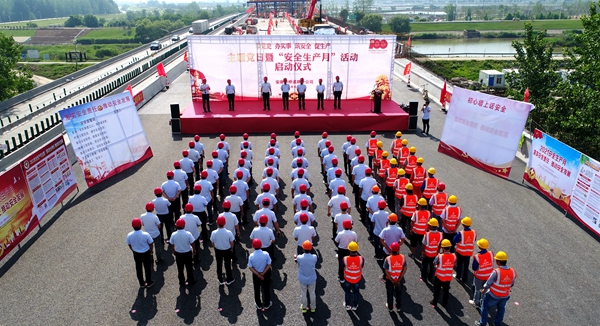 6月1日上午,道路分公司2021年“安全生產(chǎn)月”啟動儀式暨“學(xué)黨史、辦實事、筑安全、促生產(chǎn)” 主題黨日活動在合寧改擴建滁河大橋施工現(xiàn)場成功舉辦。公司黨委委員、副總經(jīng)理杜海峰出席活動并宣布“安全生產(chǎn)月”啟動,分公司領(lǐng)導(dǎo)班子、后勤部門負責(zé)人,省內(nèi)各項目經(jīng)理、支部書記及安全部長,肥東片區(qū)項目黨員、團員青年及一線工人代表共計百余人參加活動。
