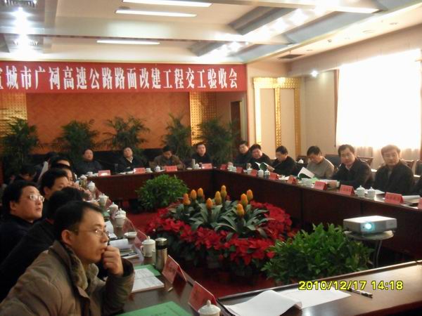 12月17日,廣祠高速公路改建工程項目交工驗收會議在廣德縣隆重召開,公司承建的廣祠01標(biāo)以93.6分的高分順利通過交工驗收。安徽省高速公路控股集團公司副董事長屠筱北、省質(zhì)檢站、宣城市交通局相關(guān)負責(zé)人、公司總經(jīng)理汪衛(wèi)東、副總經(jīng)理盛明宏等及相關(guān)媒體參加了交工驗收會。