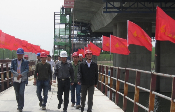 何局長一行聽取了公司總經(jīng)理助理傅月斌同志關(guān)于當前施工總體情況的匯報,并深入到主橋施工現(xiàn)場,詳細詢問和查看了工程標準化建設(shè)和質(zhì)量安全情況,對該項目總體建設(shè)情況給予了肯定。