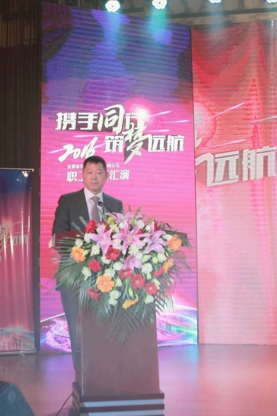 演出現(xiàn)場(chǎng)華燈璀璨,座無虛席,氣氛喜慶熱烈。匯演正式開始前,公司董事長、總經(jīng)理孫學(xué)軍發(fā)表了熱情洋溢的致辭。他首先代表公司向蒞臨現(xiàn)場(chǎng)的嘉賓及長期以來堅(jiān)持在公司各個(gè)崗位的員工及家屬,致以誠摯的問候和新春的美好祝愿,向默默奉獻(xiàn),為路橋事業(yè)奠基的前輩們致以崇高的敬意。指出,2015年,是宏觀形勢(shì)錯(cuò)綜復(fù)雜的一年,也是公司成績斐然的一年,在建工集團(tuán)的正確領(lǐng)導(dǎo)下,全體員工凝心聚力,開拓奮進(jìn),取得了驕人的業(yè)績。充滿機(jī)遇和挑戰(zhàn)的“十三五”已經(jīng)開局,全體路橋人要秉承優(yōu)良傳統(tǒng),凝心聚力,同舟共濟(jì),譜寫安徽路橋新的輝煌。