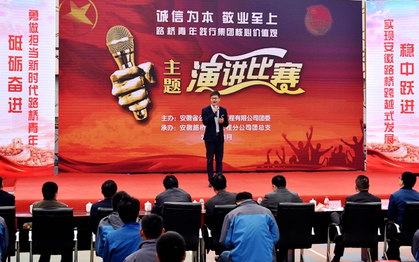 本次演講比賽是公司團(tuán)委“路橋青年踐行集團(tuán)核心價值觀”主題活動的一項重要內(nèi)容,通過活動,進(jìn)一步促進(jìn)了集團(tuán)核心價值觀的宣貫和落地,激勵著新時代路橋青年不忘初心,在黨的十九大精神引領(lǐng)下為公司的發(fā)展做出更大的貢獻(xiàn)。