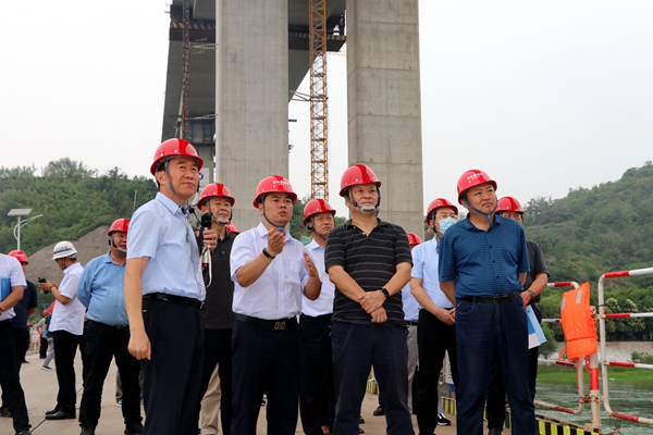 6月23日下午,河南省交通廳二級(jí)巡視員李強(qiáng)帶領(lǐng)河南省高速公路“雙千工程”建設(shè)推進(jìn)會(huì)觀摩團(tuán)到黃河特大橋觀摩。