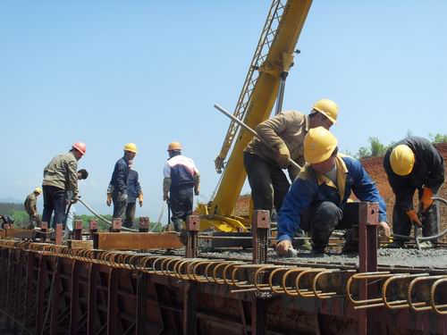 春節(jié)后由于連續(xù)雨水天氣的影響,原計劃2月下旬箱梁預制計劃推遲近兩個月,但隨著4月天氣漸漸好轉(zhuǎn)后,箱梁成功預制宣布項目的橋梁工程將進入大規(guī)模橋梁上部施工階段。由于項目部的橋梁工程有四座,且比較分散,施工任務比較緊,項目部自2008年8月進場后高度重視四座橋梁施工,加大對橋梁施工的機械、模板人員的投入,截止目前兩座大橋已完成立柱70根,蓋梁26個,下部構(gòu)造已基本進入尾聲,而兩座小橋的下部正在緊張有序進行中。在后期的施工中。項目部將調(diào)整和繼續(xù)加大橋梁工程的施工力量和設備材料的投入,確保橋梁施工任務的完成,計劃6月底完成兩座大橋的剩余下部構(gòu)造,10月底完成箱梁預制安裝計劃,7月底完成兩座小橋的下部構(gòu)造,12月底完成箱梁預制安裝工作。