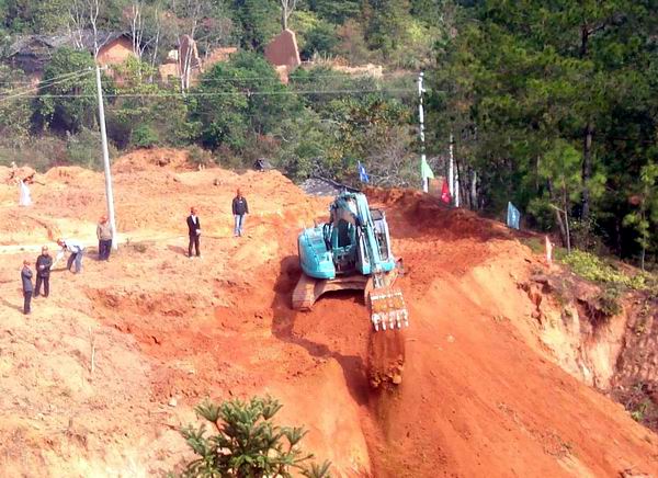 上午10時(shí)28分,在路基施工隊(duì)挖掘機(jī)的轟鳴聲中,我標(biāo)段正式開始便道施工。標(biāo)段業(yè)主單位代表、當(dāng)?shù)剜l(xiāng)鎮(zhèn)機(jī)關(guān)領(lǐng)導(dǎo)以及項(xiàng)目部全體人員參加了破土動(dòng)工儀式。我標(biāo)段處在崗地、洼地和盆地地區(qū),地形起伏較大,雨水沖刷嚴(yán)重,所以線內(nèi)便道顯得尤為重要。今日破土動(dòng)工正是紅線內(nèi)的便道修設(shè),為以后工程的順利進(jìn)行做好準(zhǔn)備。與此同時(shí),項(xiàng)目駐地建設(shè)也在同步進(jìn)行,使工程建設(shè)更加緊湊。我標(biāo)段全長(zhǎng)10.51公里,其中共有6座橋梁及圓管涵和40余道蓋板通道,具有一定的施工難度。此外業(yè)主單位要求的工期非常緊迫,而根據(jù)當(dāng)?shù)赝甑臍庀蟊砻鳎髂陮⒂泻荛L(zhǎng)一段時(shí)間可能會(huì)處于雨水天氣,從而更加大我們的施工難度。但是面對(duì)今后的機(jī)遇和挑戰(zhàn),我們項(xiàng)目部全體人員個(gè)個(gè)都精神抖擻,人人充滿干勁,準(zhǔn)備在集團(tuán)公司和公司正確指引下迎接各種挑戰(zhàn),戰(zhàn)勝困難,為公司拓展江西市場(chǎng)創(chuàng)造良好的開端。