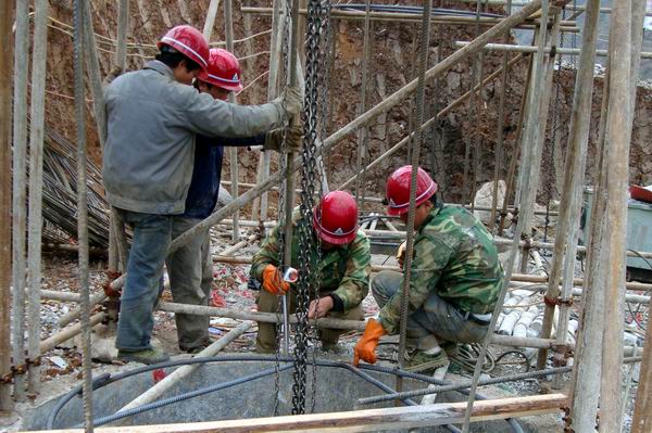 本次通過(guò)驗(yàn)收的4號(hào)主體橋墩挖孔樁工程是巖子腳特大橋第一個(gè)橋墩工程。項(xiàng)目經(jīng)理劉曉晗和項(xiàng)目總工胡學(xué)祥高度重視,考慮到人工挖孔操作安全的重要性和本次工程涉及到爆破作業(yè),在開(kāi)挖之前,劉經(jīng)理和胡總工特別為此召開(kāi)挖孔樁專項(xiàng)安全會(huì)議,對(duì)施工人員進(jìn)行全面的安全技術(shù)交底。要求項(xiàng)目部現(xiàn)場(chǎng)技術(shù)人員必須認(rèn)真學(xué)習(xí)和熟悉圖紙,安全人員必須每天到現(xiàn)場(chǎng)檢查安全事項(xiàng),要求施工隊(duì)負(fù)責(zé)人必須做到按操作規(guī)程施工;同時(shí)作出規(guī)定,任何一個(gè)環(huán)節(jié)不符合操作規(guī)程,立刻停工整頓并處罰相關(guān)人員。在此基礎(chǔ)上,4號(hào)橋墩挖孔樁工程不僅完成速度快,而且質(zhì)量和安全得到了充分的保證。