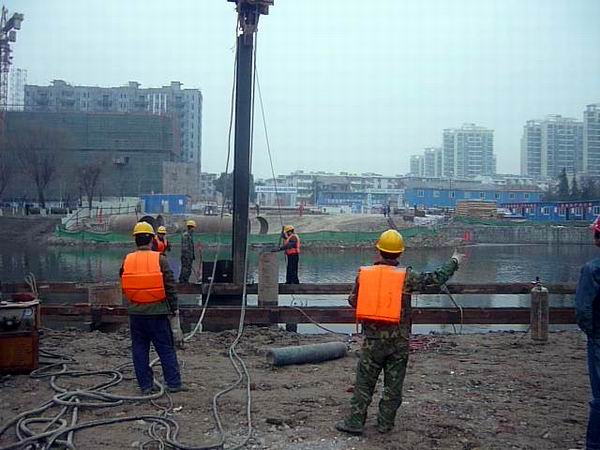 宋斗灣路工程于111日晚完成樁基施工后,全力投入到鋼板樁圍堰施工。經(jīng)過一周的努力,項目部完成了對鋼板樁、工字鋼、鋼管樁等材料的整修、焊接加工等項工作,以及樁基機械撤場、場地平整工作。119日,經(jīng)過先期鋼板樁圍堰邊線放樣及鋼管樁定位施工,終于迎來了鋼板樁圍堰導向樁架設(shè)工作,拉開了鋼板樁圍堰安裝的序幕。