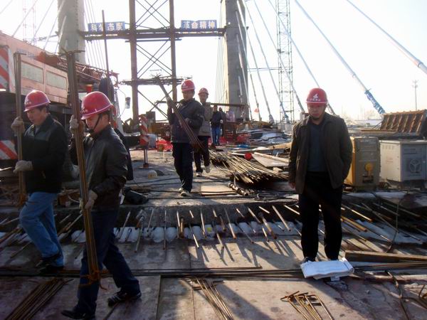 根據(jù)年前項(xiàng)目部會(huì)議計(jì)劃安排,節(jié)前應(yīng)完成主跨掛籃懸澆塊第十節(jié)段的澆筑,然而由于年底大雪天氣影響,致使原計(jì)劃有所推遲。為搶回工期,正月初六項(xiàng)目部員工便全部到崗,立即展開(kāi)謀劃,組織復(fù)工。由于作業(yè)隊(duì)外地工人過(guò)年回家未能及時(shí)全部到崗,項(xiàng)目部人員在江仲明經(jīng)理的率領(lǐng)下,親自下工地抬鋼筋、穿波紋管、綁扎鋼筋,干起了體力活,補(bǔ)上了未到崗工人的缺,使施工速度明顯加快。21日晚,在大家的共同努力下,主跨第十節(jié)段混凝土順利澆筑完畢。在節(jié)后的六安市建筑工地中我部率先完成了混凝土澆筑工作,在虎年的新春里開(kāi)了一個(gè)好頭。六安市《大別山晨刊》報(bào)以《部分工人未到崗技術(shù)人員頂上去——新春伊始淠望路大橋搶抓工期》為題在頭版對(duì)我部的事跡進(jìn)行了專(zhuān)題報(bào)道。