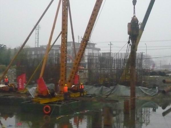 宋斗灣路項目進(jìn)入打設(shè)河中鋼管樁階段