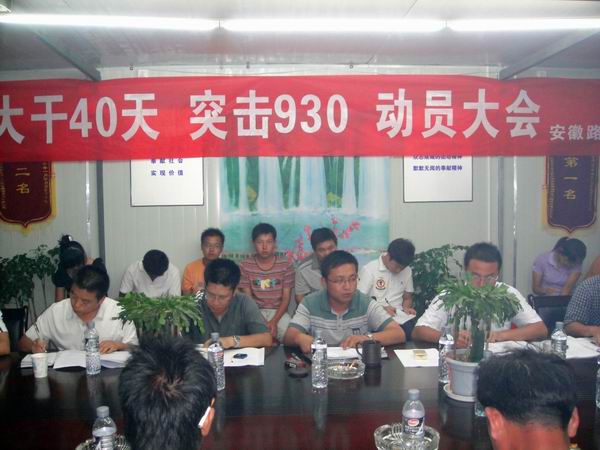 此次“大干40天,突擊930“會(huì)議是在項(xiàng)目辦“大干100天”活動(dòng)的基礎(chǔ)上,緊緊圍繞“930”節(jié)點(diǎn)工期,精心組織、合理安排、及時(shí)總結(jié)糾偏的一次會(huì)議。此次會(huì)議統(tǒng)一了A7標(biāo)全體員工的思想認(rèn)識(shí)、明確了各自的目標(biāo)任務(wù)。