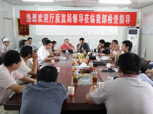 劉軍首先主持召開質量安全檢查布置會議,簡要的介紹本次質量安全檢查的內容和分工。項目經(jīng)理王遠勝向檢查組一行就我部施工進度、質量、安全、環(huán)保、內業(yè)管理和目前施工存在的困難進行專門匯報。