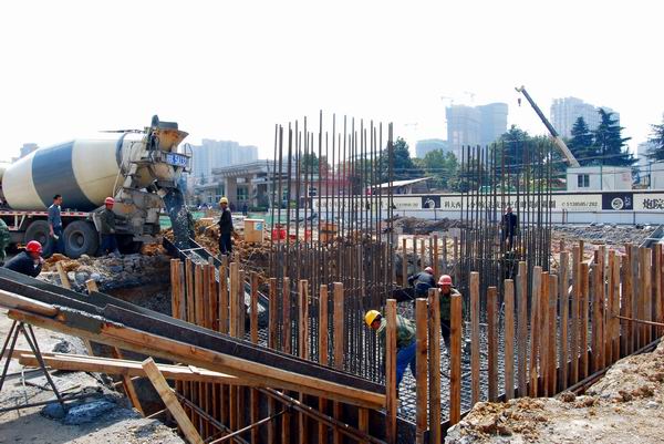 為保證本承臺的順利澆注,項目部在施工前進行了詳細的技術(shù)、安全、質(zhì)量交底,還專門召開了協(xié)調(diào)會,進行人員、材料等方面的組織。項目負責(zé)人旁站對澆注過程進行全程指導(dǎo);質(zhì)量、安全人員全程監(jiān)控;其他人員各司其責(zé),為澆筑的順利完成提供了有力保障。