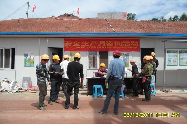 上午10時半左右,贛州高速公司安監(jiān)辦劉主任、項目辦綜合處李處長等業(yè)主單位領(lǐng)導(dǎo)來我標(biāo)段現(xiàn)場,指導(dǎo)檢查安全月咨詢活動開展情況,并接受現(xiàn)場工人有關(guān)安全生產(chǎn)知識的咨詢。在對我標(biāo)段安全生產(chǎn)月咨詢活動開展情況表示贊許的同時,劉主任一行也提出了要求,希望我部采取多種形式開展安全生產(chǎn)宣傳教育工作,使一線工人明確自己的權(quán)利、義務(wù),掌握施工安全知識和技能。