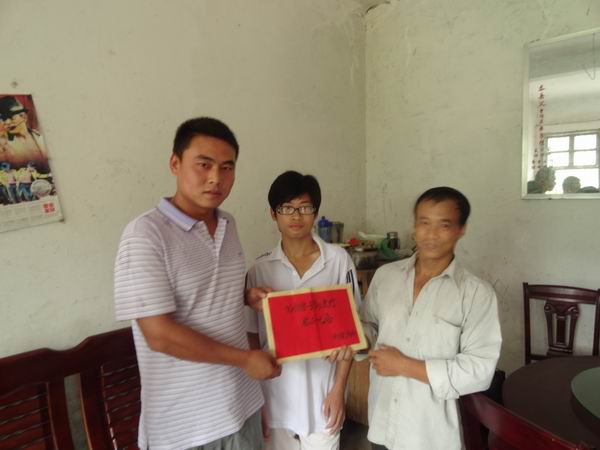 據(jù)了解,鄺土華同學(xué)今年以498分的成績被東華理工大學(xué)核工程與技術(shù)專業(yè)錄取,但昂貴的學(xué)費對于這樣一個母親臥病在床、僅靠一畝田地維持生計的貧困家庭來說,是不小的負(fù)擔(dān)。我部經(jīng)理羅權(quán)在了解相關(guān)情況后,積極組織參建員工捐款,并隨同全南縣交通局局長童文平、J2高駐辦高級駐地張金杰親自前往家中慰問。