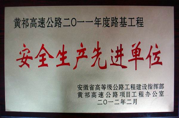 黃祁08標(biāo)獲黃祁高速2011年度“安全生產(chǎn)先進單位”