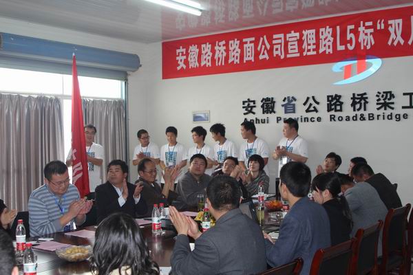 副總經(jīng)理陳智代表公司向全體參會人員宣讀了皖路橋路面辦〔2012〕5號文件——《關(guān)于開展宣貍改建工程L5標(biāo)“雙月會戰(zhàn)”勞動競賽的通知》;路面公司工程部長王小杰、總經(jīng)濟(jì)師袁青嶺分別詳細(xì)闡述了活動的實施方案和具體獎勵措施。