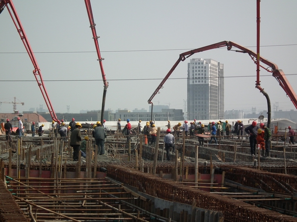在澆筑過程中,項(xiàng)目部技術(shù)員全部上陣,并一直堅(jiān)持到結(jié)束,休息和三餐全部在澆筑現(xiàn)場解決。安全管理人員也全部到場,5名安全員分別把守著高壓線四端,確保澆筑安全距離,防止輸送泵車的大臂觸電。項(xiàng)目部和監(jiān)理部主要負(fù)責(zé)人也在場檢查、督導(dǎo)澆筑質(zhì)量和安全。