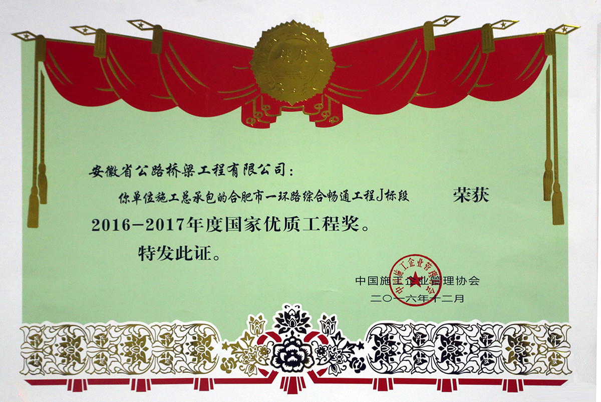 合肥市一環(huán)路暢通工程J標(biāo)—國家優(yōu)質(zhì)工程獎